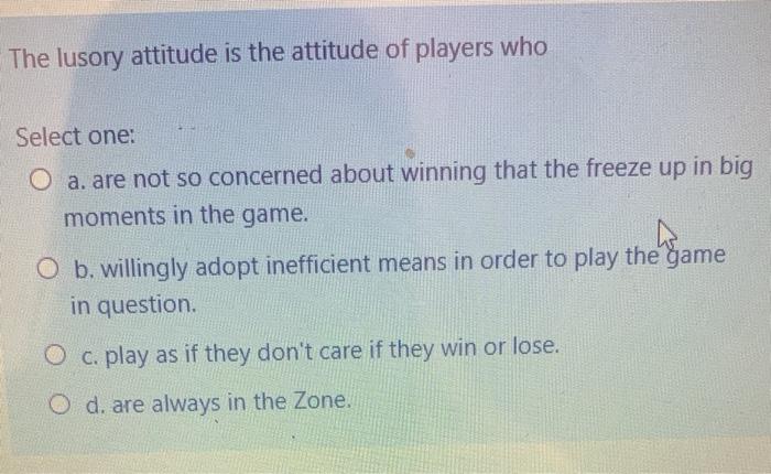 Solved The Lusory Attitude Is The Attitude Of Players Who Chegg Com